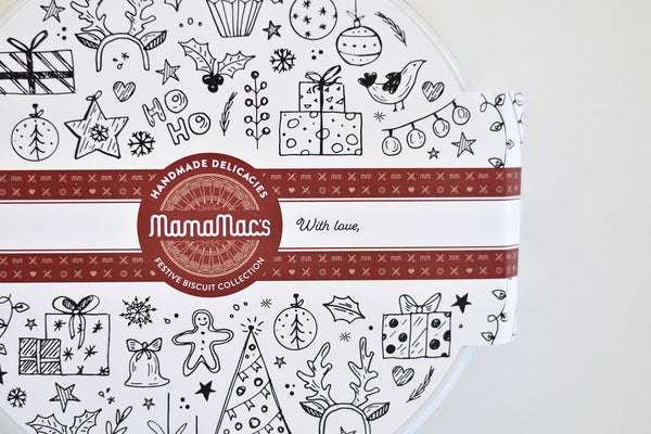 A personalized cake tin with a selection of delicious Mamamac’s biscuits – the ultimate gift!